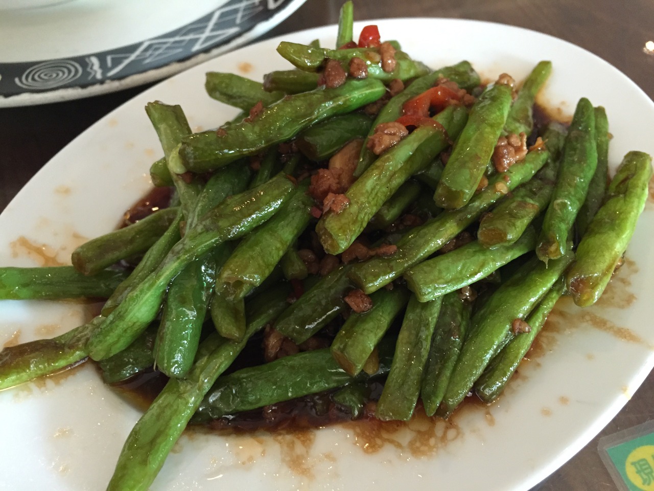 下手なメニューですが、麻婆豆腐もピリ辛で美味しかったし、たぶんインゲンと思われる炒め物もニンニクが効いていて美味。