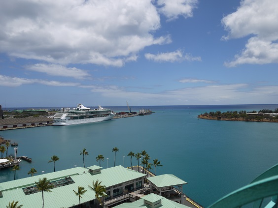 アロハタワー周辺のマーケットプレイスは改装工事の為、全面閉鎖中でしたのでせめてアロハタワーの展望台に登る事にしました。以前のも一度登りましたが無料ですが、登る前にバック等の中身を確認してもらう必要が有ります。