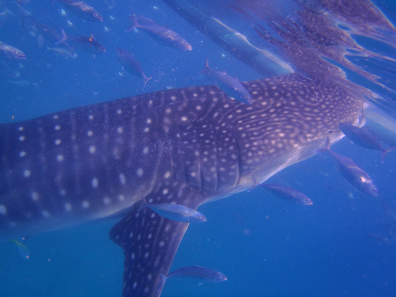子供のジンベイザメが2匹。非常に多くの人に取り囲まれている中で餌を食べていました。この状況は承知の上でジンベイに会いたい一心で行きましたが、やはり残念な感じは否めません。マクタンからタクシーで3時間。アクセスは悪いですがセブの田舎は面白かったので、過剰な期待を抱かないでいけばよいかも。