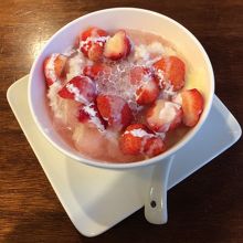 こぢんまりしてとってもかわいいお店で冬季限定のイチゴ豆乳プリンを頂きました☆