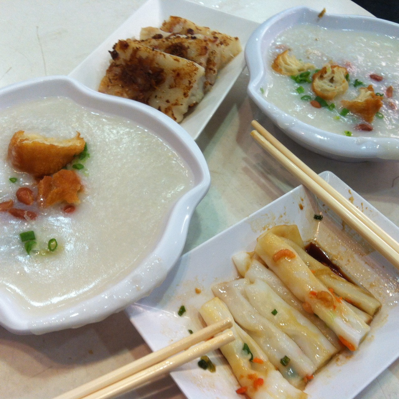 2人でお粥2種、大根餅1皿、腸粉1皿をオーダーして、HKD83。