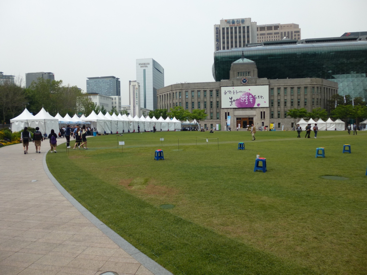 南大門市場で食事をしたあと、ソウル広場まで歩きました。