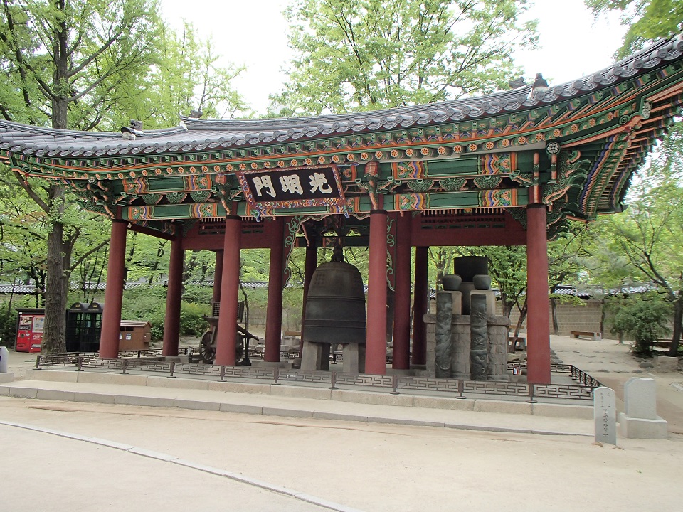 大きな鐘を吊り下げて展示してございますが、もともと釣鐘を支えられる構造ではないのか、石台を下に置いているのが何かちぐはぐな印象でございました。
