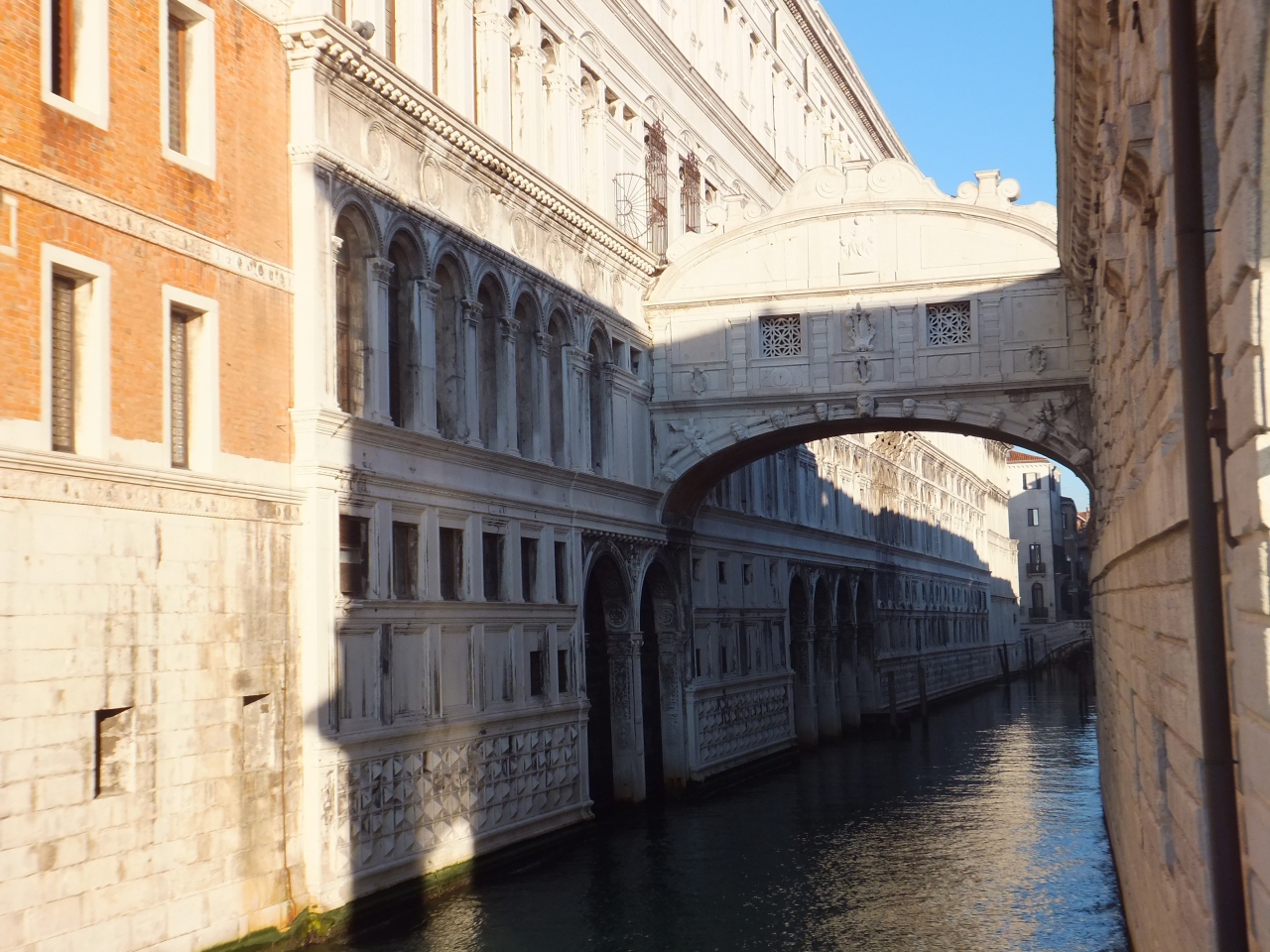 この箸はドゥカーレ宮と牢獄をつなく橋で、有罪の判決を受けた罪人が牢獄に入る前にため息をつくことから付けられた名前らしいですが、今は有名な観光地です。