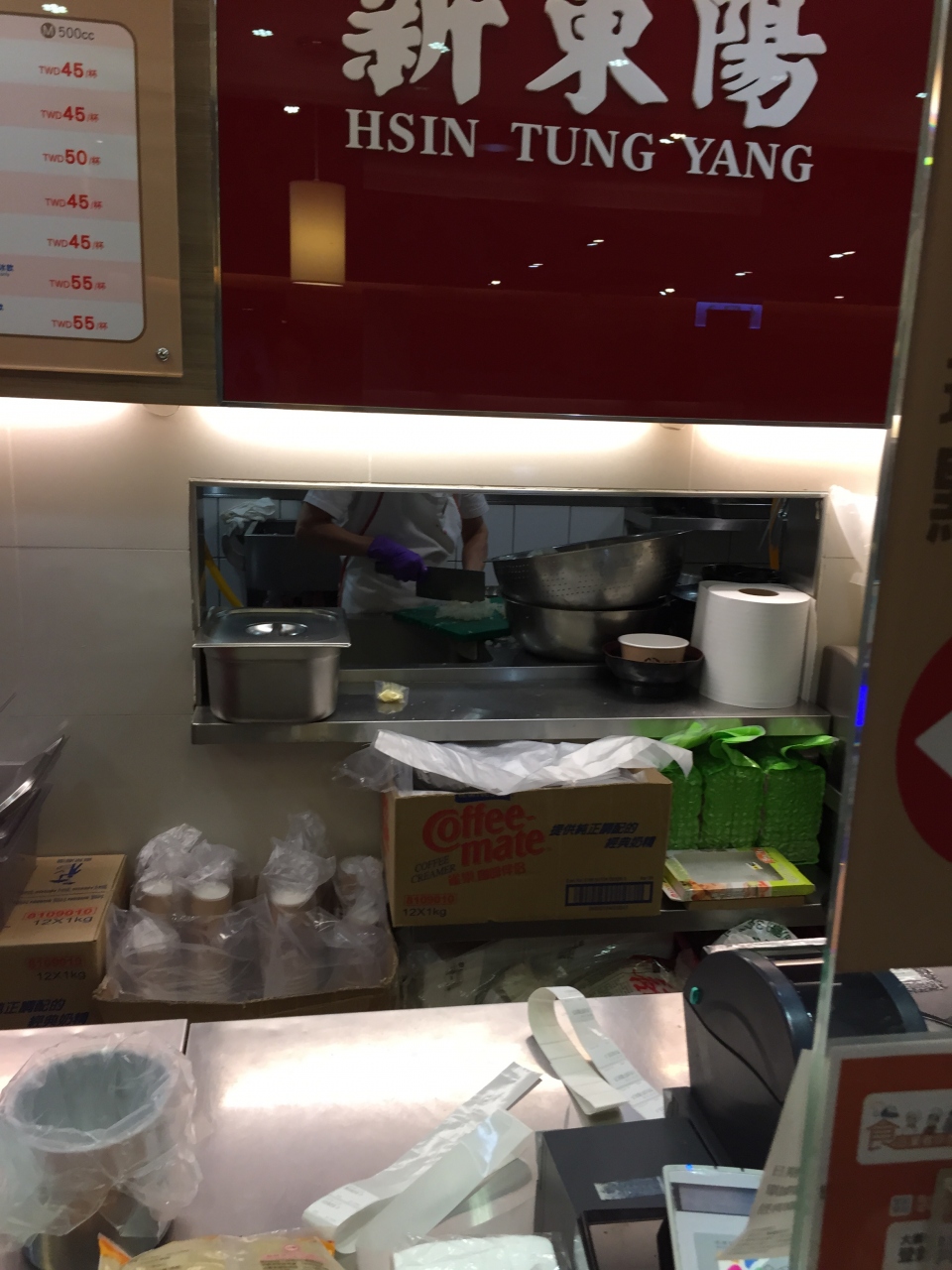 桃園空港ターミナル?フードコートにある新東陽でタピオカミルクティーを購入。45ドルで市内のチェイン店よりやや高いけど、スタッフはちゃんとミルクを調理し、シェイクカップを利用、お客様の前にミックスして、美味しそうに仕上げしてくれました。タピオカビーズもお見事、プリプりで、噛み応えがあって、おいしかったし、ミルクティーは濃厚で、好みの味です。