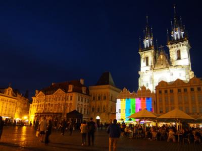 旧市街広場へ行けばすぐに見つけられます。天文時計の斜めにありますので、一緒に写真におさめると座りが良かったです。天文時計の上にのぼり、そこからティーン教会を見るとまた違った雰囲気が楽しめます。夜は夜でライトアップがとてもきれいでオススメです。