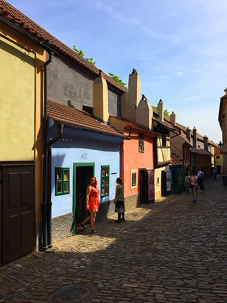 カラフルでかわいい建物が立ち並んでいて、まるで絵本の中に居るような雰囲気です。1つ1つがショップなので黄金の小道ならではのグッズなども購入することができます。通りの名前は、ここに金細工師を住んでいたことに由来。チェコの有名な詩人で作家のフランツ・カフカが住んでいたらしい。『No.22』って書いてあるのがその家だそうで、日本に帰ってから知りました。泣