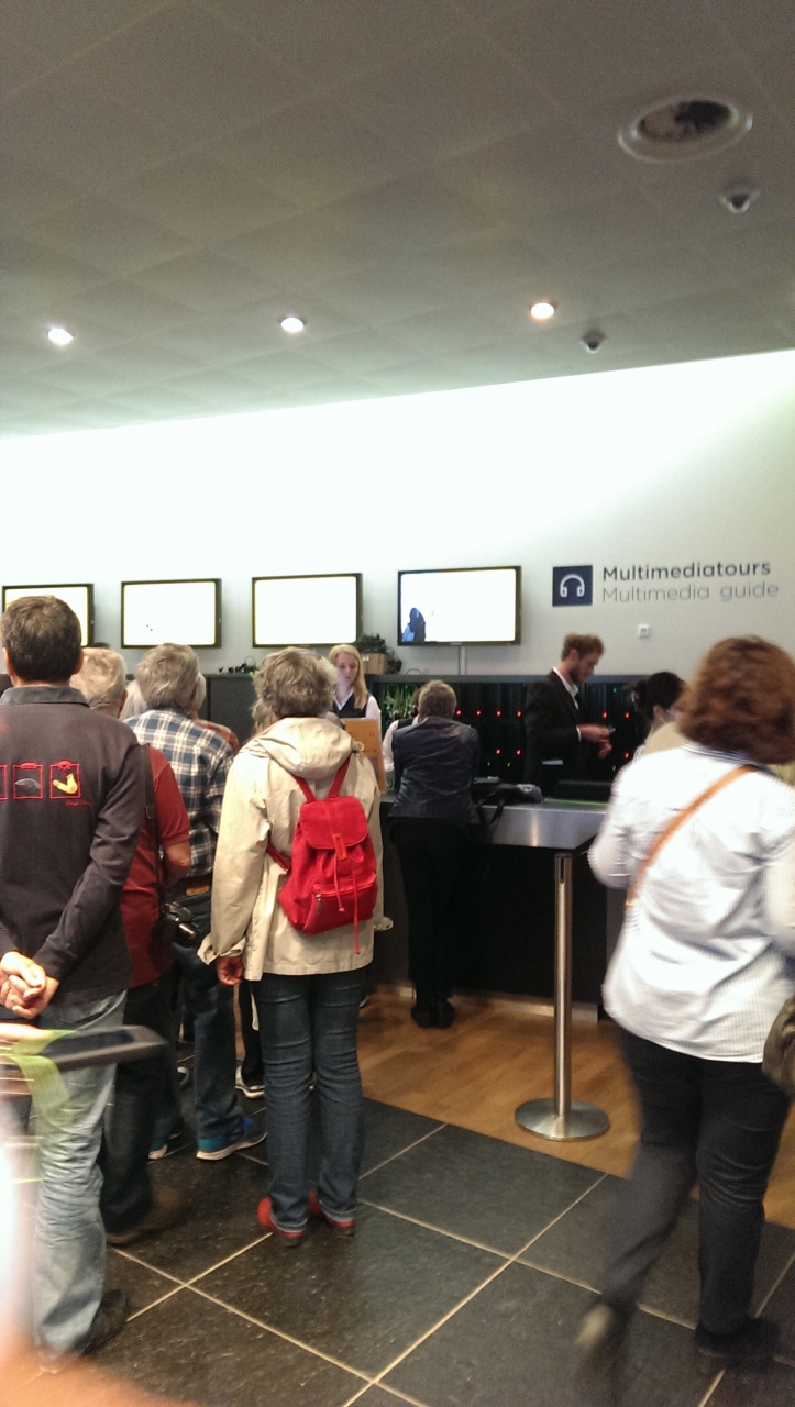 チケットを見せてから入るとクローク、その後オーディオガイドの貸し出しがあります。日本語ガイドあるのがさすがアムステルダムで、5ユーロで解説を聞きながら超有名作品を含め見所をまわれます。展示数が多く、時間がたっぷりとれないけど堪能したいときは非常に助かります。