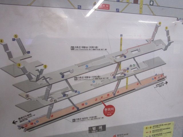 地下鉄安国駅は3番線の駅。駅番号は328番。