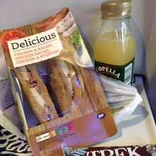 メインはサンドイッチ、トルティーヤ、パニーニなどから選べて、スナックもチョコバー、ポテトチップスのようなものから選べます。飲み物もジュース、ミネラルウォーターなどから選べるので、お手軽に旅路の軽食を購入出来ます。
