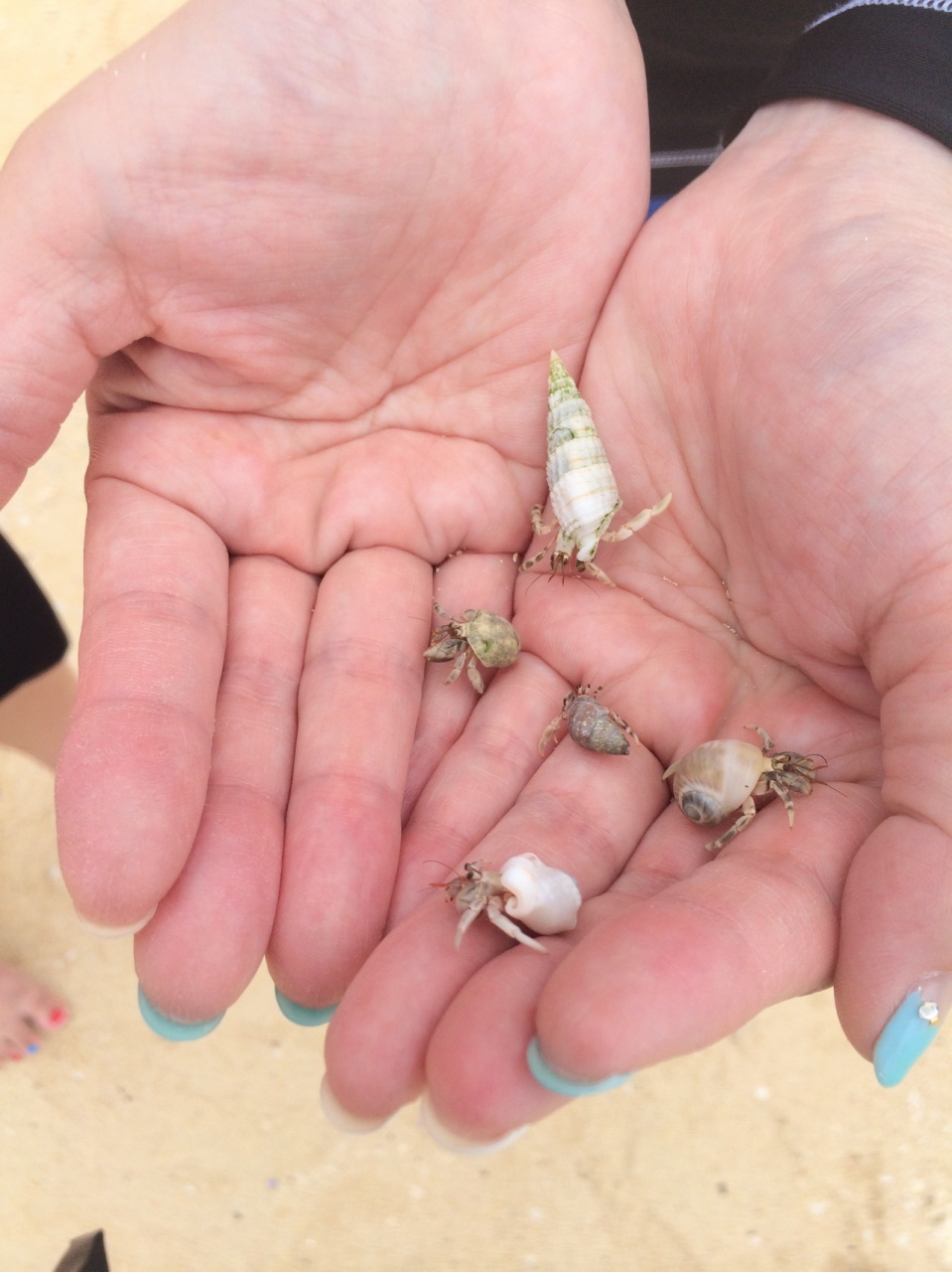 プールから直結でビーチに行けます。ヤドカリが波打ち際あたりにいました。