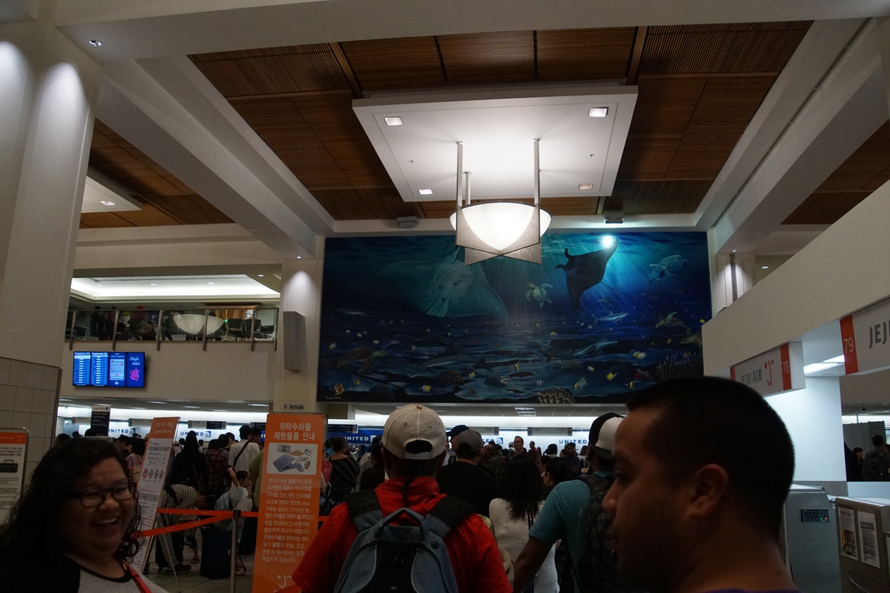 深夜の到着だったのでトイレが清掃中でした。出国は早朝の飛行機でしたが、フードコート、お土産類のお店は開いていたのでショッピングができます。昨年はレスポートサックがあったのですが、撤退していました。ディズニーの塗り絵の本や洋書などもありました。