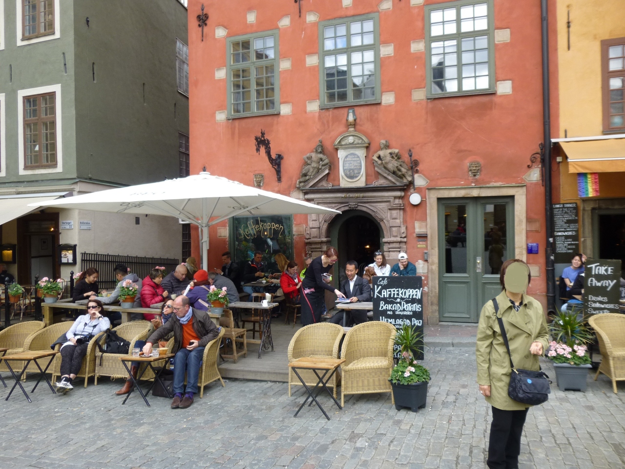 ノーベル博物館の斜め向かい、大広場に面した古風で赤い漆喰壁のカッフェ。そとのテラスでちょっと休憩がしてみるのがいい。小中学生が先生に引率されてくるのを眺めていると楽しかった。あのアジアの国の大声団体がくると雰囲気ぶち壊しだが・・・