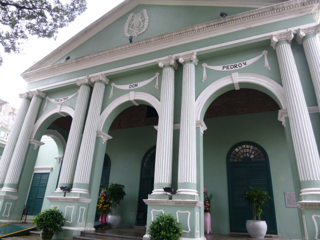 セナド広場からずーと歩いて、ここ「ドン ペドロ5世劇場」に来ています。直ぐ隣の「聖オーガスチン教会」は、淡いクリーム色ですが、この建物は淡い緑色です。いい色していますね。庭までは入れますが、建物の中には入れませんでした、しかし、このヨーロッパ風の景観を観るだけで満足しています。この付近は見どころいっぱいです。堪能くださいね。