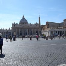 ダンブラウンの代表作、『天使と悪魔』でもおなじみのサンピエトロ聖堂の前にある広場。向かって右手側の建物が教皇のお住まいで、特定の日の特定の時間になると顔出しをするとか。周辺にはスリが出没するので注意するように言われました、