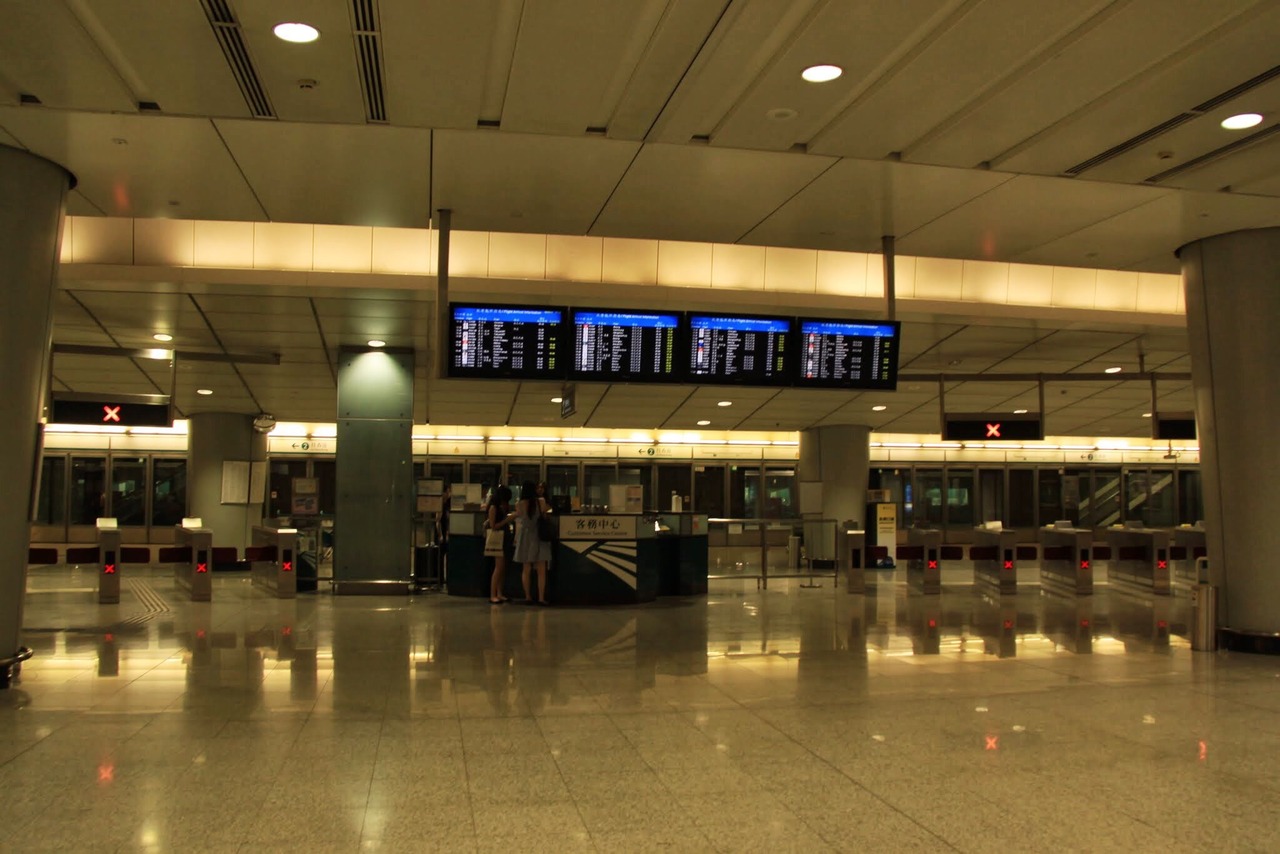九龍のリッツカールトンがあるビルの下にある。空港行きは駅でチェックイン出来るので非常に便利。チェックイン後併設のショッピングセンターや展望台に行くことも可能。九龍からは離れているが空港線利用だとシャトルバスの利用が可能。