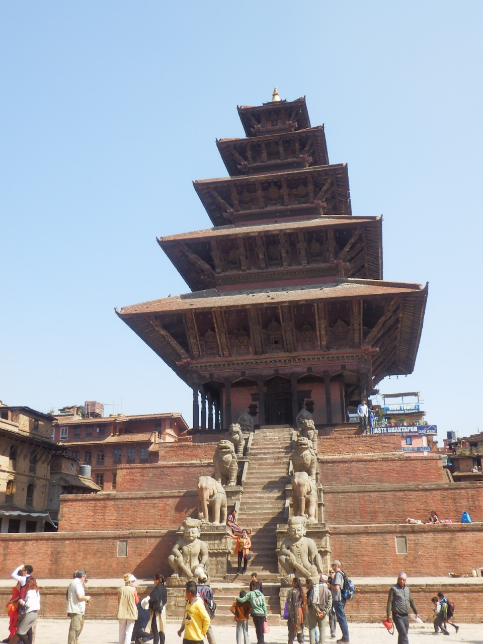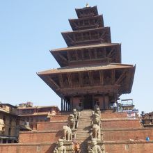 ダルバール広場にも近いトウマディー広場に建つ巨大な寺院です。ピラミッドのようなレンガ造りの土台の上に五重塔のような建物が乗っています。階段の上まで上り、建物の一階部分を見学することが出来ました。階段はとても急ですし、かなり高いので、高所恐怖症の人には辛そうでした。階段で写真撮影している人も多く、なかなか階段を上がれませんでした。