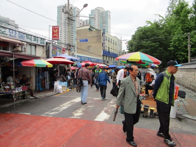 地下鉄1号線東廟前駅(トンミョアッ、Dongmyo) 3番出口を出て東廟の西側の道沿いにぎっしりと露店が並んでいます。