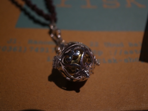 ガムランボールを選んだ後も、シルバーのチェーンを付けるか、レザーコードか最後まで悩んだけどレザーコードにしました。大きさや色形がいろいろありチェーンもいろいろ選べるのでいいです。レザーコードも色や編み方がいろいろありますし、シルバーチェーンもシンプルなものだけでなく、途中に天然石などのビーズが入ったものなどいりろあります。