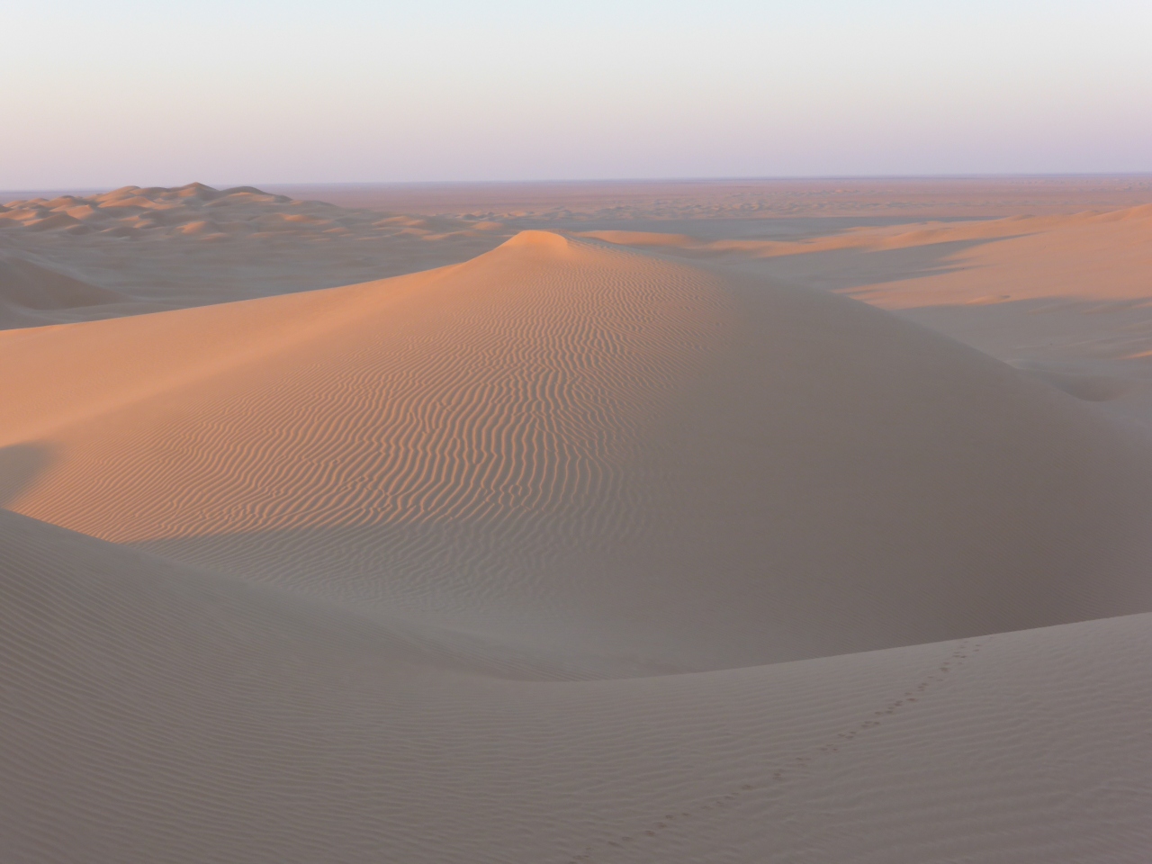 車の轍もなく,砂丘も風紋も足跡で荒れておらず。