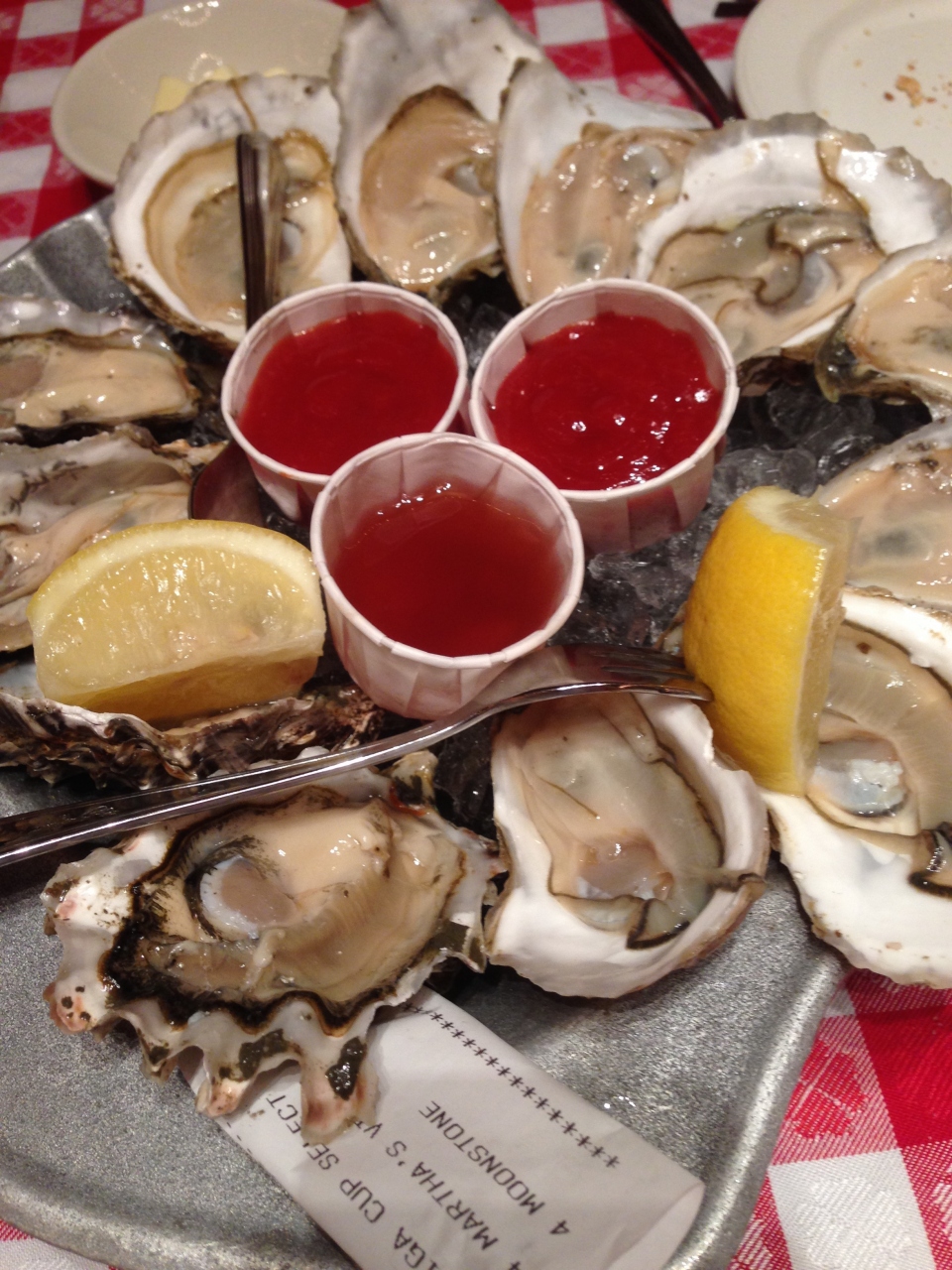 事前学習にてオススメだよーとは聞いていたものの、いやいやとは言っても駅のレストランでしょー。っと思ってました。‥実際行ってみると、それは違いました。生牡蠣が超美味しかったです。なんといっても生で海産物を食するなら日本でしょと思ってましたけど、反省します。めちゃ美味しかった。生もの以外の海産物も美味しかったです。ロブスターの半身。美味しすぎて食べるのに集中しすぎて会話がなくなりました。ただ一つ心残りなのは、白いクラムチャウダーを食べられなかったことです。お席担当のフタッフさんに「No good」と言われて赤いクラムチャウダーしか注文させてもらえませんでした。せっかく二人で行ったから、赤いマンハッタンクラムチャウダーと白いイングランドクラムチャウダーを食べ比べたかったのになー。赤いの美味しかったですよ。でも心残り。白いの食べたかった。