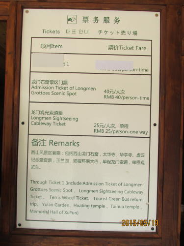 龍門とは“登龍門”の語源である龍門は、門の一部を触ると科挙に合格するとか、出世すると言われています。皆さん急な階段をふうふう言いながら登ってきます。階段の両側には華亭寺、太華寺、三清閣など古刹、殿宇、楼閣が木々に隠れている。石段、石道、石坊、石窟、石彫、石刻などすべて絶壁に掘られています。実際登るのに必死で周りの石彫、石刻等を見る余裕がありませんでした。後で解った事ですがリフト(25元)は龍門の上に出ます。カート(8元)は龍門の下へ出ます。龍門への昇りは絶壁の急な階段です、25元惜しまずリフトを選んでください。リフトは山頂からの景色が素晴らしく、カートは龍門で目一杯、さらに上に登る元気は有りません。