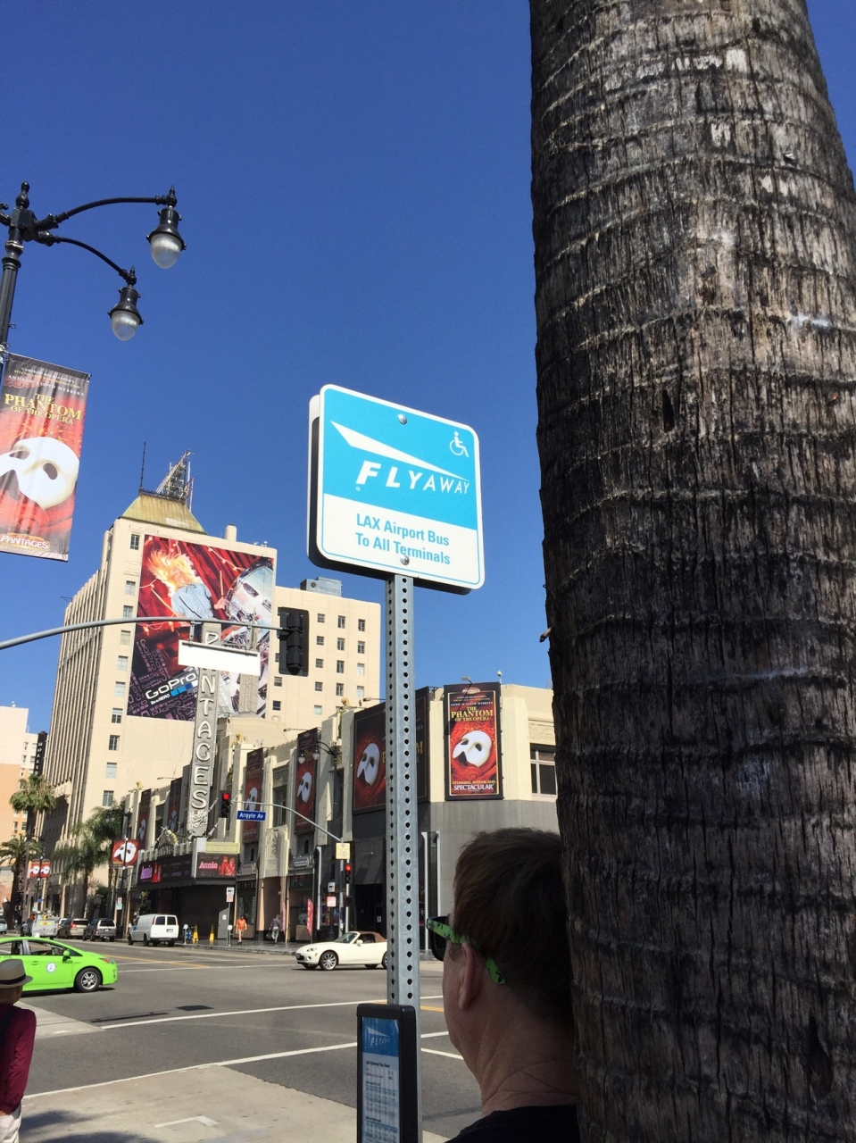 14時55分の便のため、10時15分のバスを利用しました。ハリウッド・ヴァイン駅を出て、右に3分程度歩けば着きます。かなり近いですが、バス停のサインは全く目立たないので注意が必要。