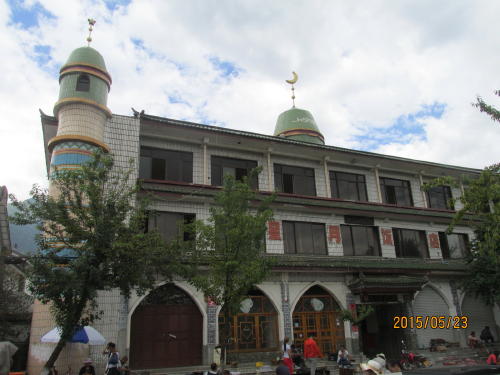 大理古城城内には南北に5本、東西に8本の道が走り、黒い石畳みで舗装されています。ペー族の伝統的な民家がその碁盤の目のように敷かれた道路の両側に立ち並び、灰色の瓦、白い壁、軒下の壁にはペー族独特の文様が緑で描かれています。また、1800年代後半に建てられた中国雲南提督・楊玉科の屋敷や石碑など歴史的な文物も数多く存在し、歴史探索の名所としても知られています。大理古城を北門から南門まで貫くメイン通り、復興路、その西側に並行して南北を貫く博愛路が有ります。東門と西門を東西に結ぶ玉ジ(シ耳)路が横のメイン通り。城壁に囲まれていた(現在は一部を残すのみ)大理古城は五番の目の様に縦横の路がはっきりしています。北門から南門まで貫くメイン通り、復興路は観光主体の繁華街です。それに対し博愛路は地元住民相手の商店街で生活感溢れる路です。