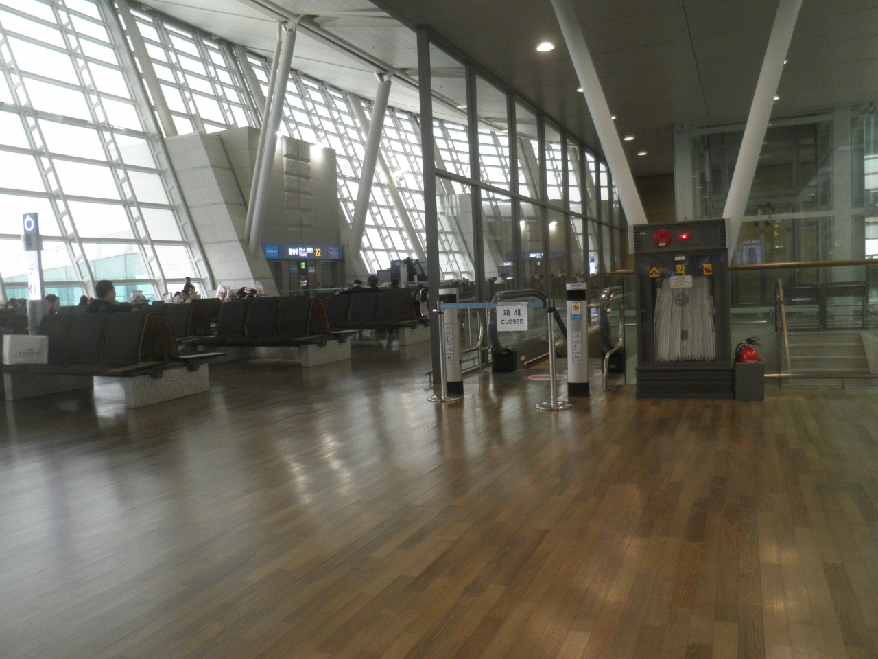 バンコクからインチョン国際空港経由で日本に戻りました。 深夜、インチョンについて空港で入国せずに朝まで過ごしました。 空港はかなり広くてすいていて、椅子も横になりやすので夜は快適にすごすことができました。 でも朝になると、テレビがあるのでうるさくて困りました。 電源変換用アダプターをわすれていったのですが、コンセントについていてつかわせていただきました。