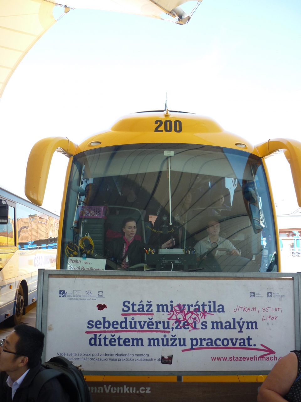 チェコで民営バスとして一番利便性が高いのはスチューデント・エージェンシー社のバスでしょう。黄色の車体はどこにいても目立ちます。