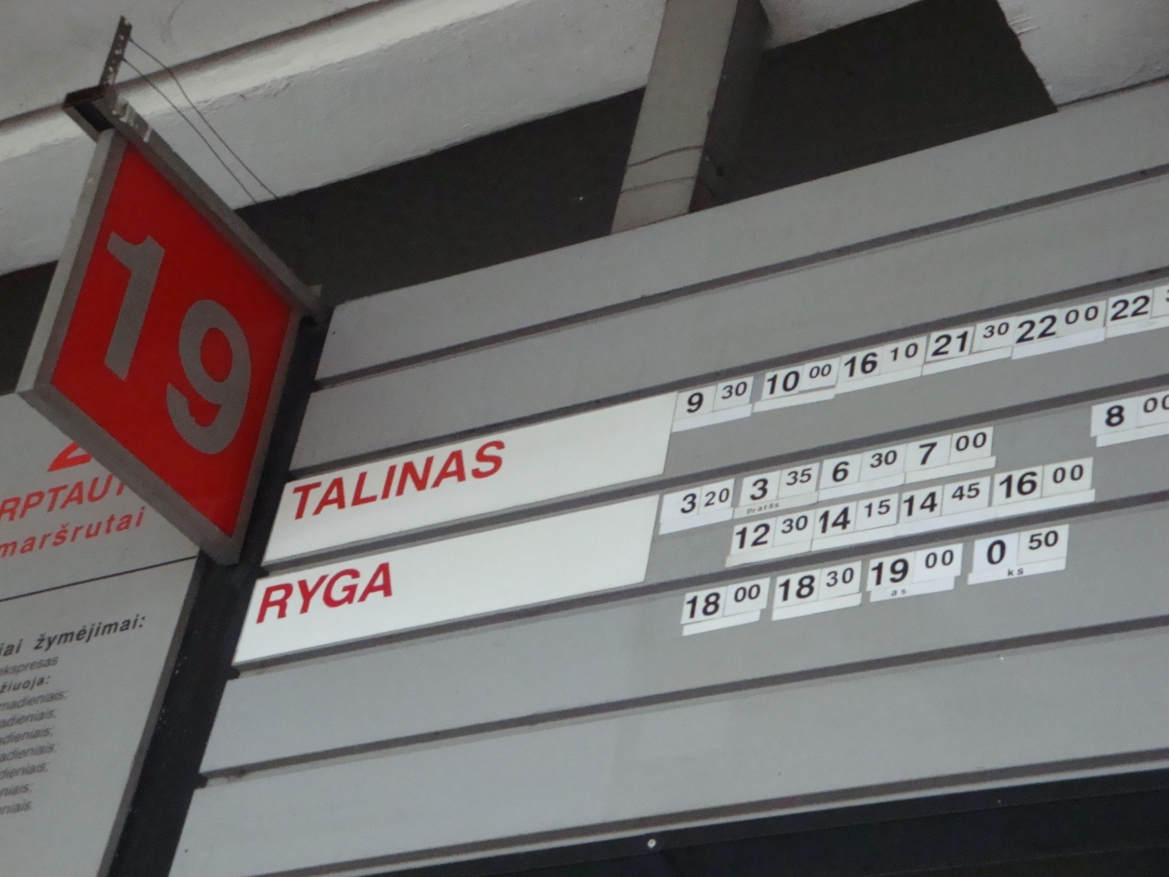 空港を出たらすぐ左手に市内行きバスがあります。白いバンでした。市内行きのバスのロゴがあるわけでもなく、バスらしくないので、わかりませんでした。バス乗り場をうろうろして、バスの運転手に聞いてもビュリニス駅には行かないとしか言ってくれません。そのあたり旧ソ連のなごりを感じました。たまたま日本人の方があれだよと教えてくれたおかげで、空港を出て二本目のバスに乗ることができました。たったの1ユーロです。愛想はないけれど、チップを渡したら無表情ながらお礼を言ってくれました。無愛想なのではなくて、サービス業というのがまだまだ浸透していないのだとかえって新鮮でした。不親切なのではなく、必要最低限しか言わないという感じ。ちなみにバンは案内の小さな紙切れがはっつけてあるだけなので、うっかりすると見逃してしまいますから注意してください。