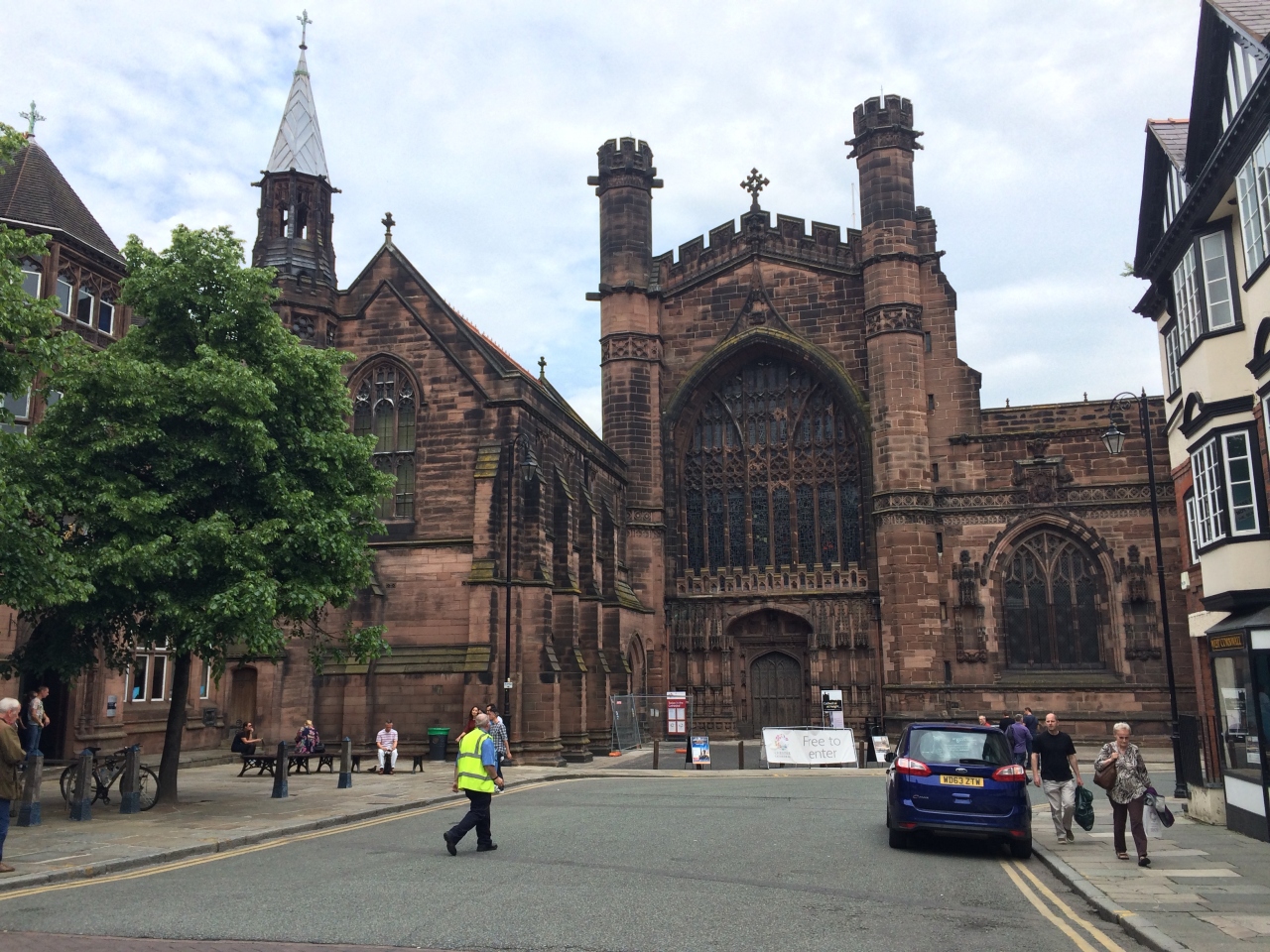 チェスター大聖堂は入場無料ですが、観光客は通常、寄付金(ドネーション)を払い入ります。入口で聞いたら、相場は4ポンドだそうです。イギリスでは、美術館や教会は原則無料なのに、入口に寄付金ヨロシクとの明記があって、しかもドネーションの金額まで表示されている所が多いのが、腑に落ちません。回りくどいので、いっそ入場料にすれば良いのにと思ってしまいます。因みにWCだけは無料で利用できます。