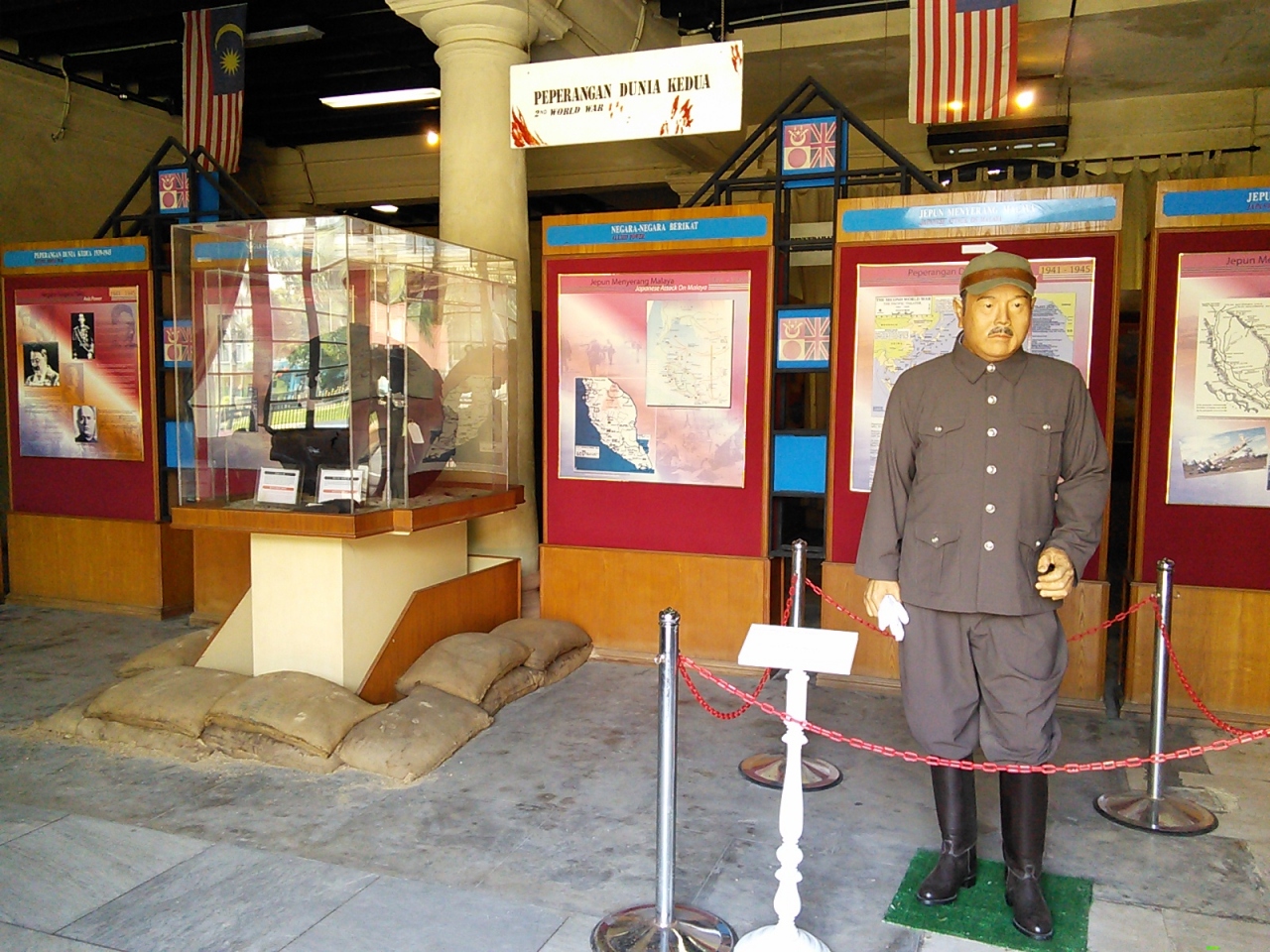 やはりインパクトがあるのは入口正面にある日本人らしき人形。彼の名は山下 奉文(やました ともゆき)。彼は1941年に第2次世界大戦の契機となった真珠湾攻撃と同時期にコタバルに上陸しマレー半島を攻略した日本軍の中将で、この進攻が結果的にイギリスからの祖国解放独立につながったためマレーシアでは「マレーの虎」と呼ばれ英雄視されている人物です。館内も当時の日本軍に関する展示物が多いです。