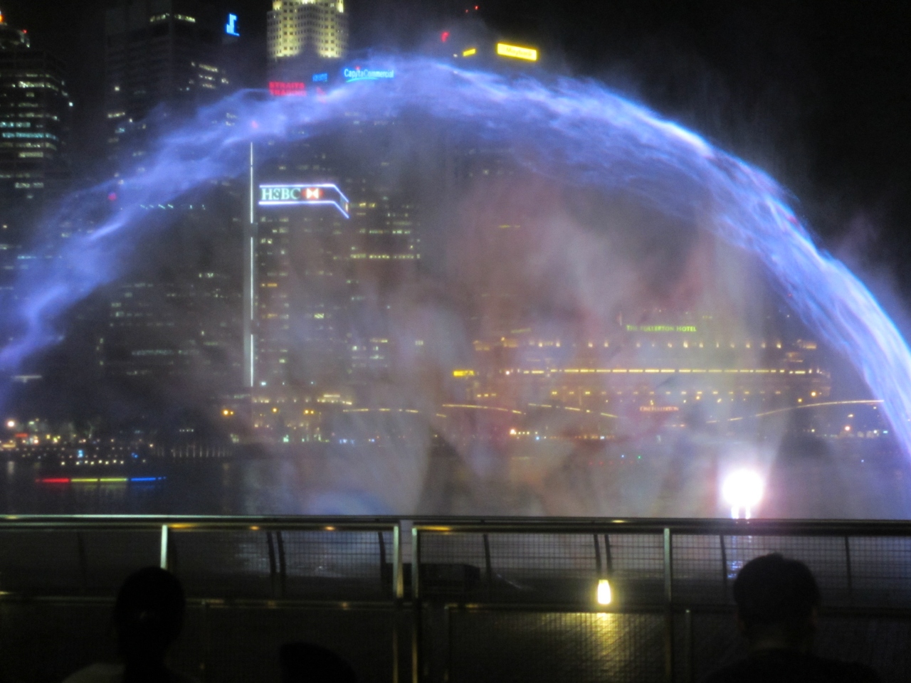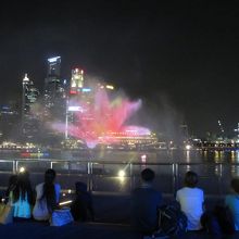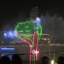 マリーナ・ベイ・サンズ前のマリーナ湾で暗くなってから1日2回行われるレーザーによるショウです。観客は椅子に座って13分ほどのショウを無料で楽しむことができます。内容は空間に映し出されるレーザーによる光の映像と噴水がメインです。シンガポールの人々の一生と一致団結を表しているのかなと感じました。