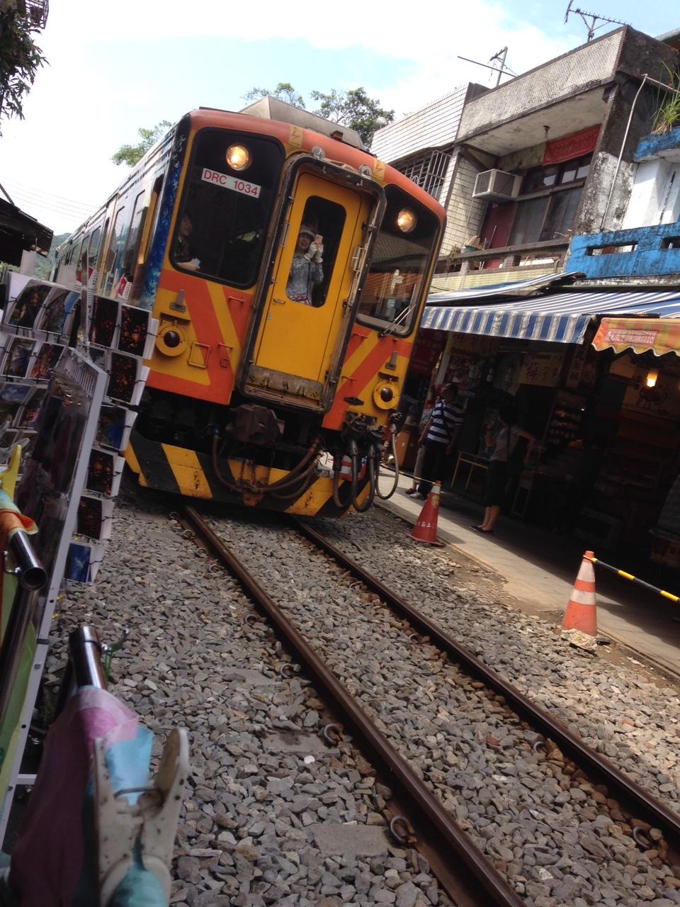 たまーにやってくる汽車!どこからともなく、合図があって線路上から離れ、ゆっくりと写真を撮影しながら願いを書いた天燈をあげました。