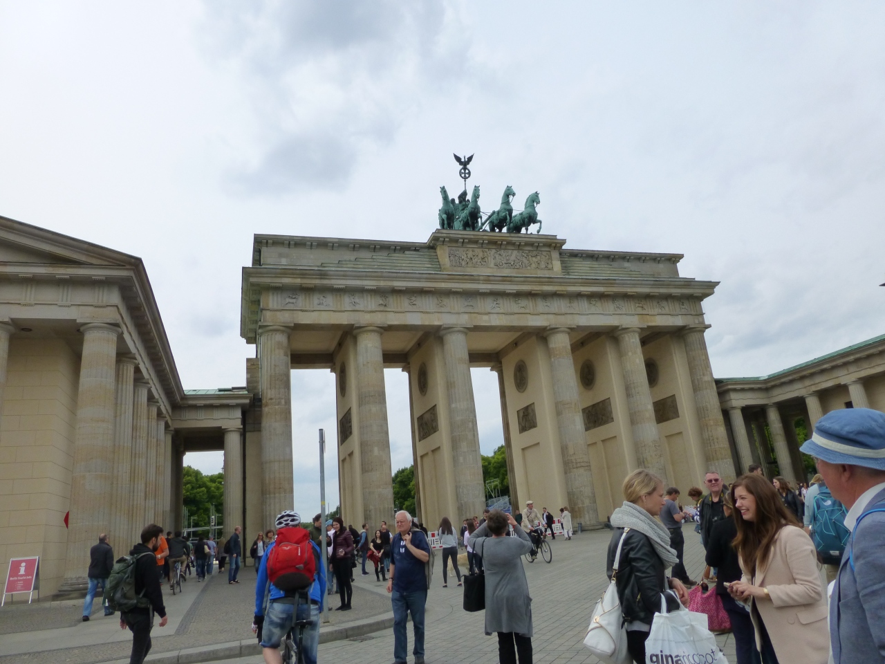 ベルリンを紹介する写真には必ず出てくるように思います.そのせいか観光客もたくさん来ています.門は幅30mほどはあると思います.行ってみたら小さくてがっかりといったことはありません.また,滞在中2度ほどスポーツ関連のイベントがあったようで門の西側(裏側)の道路には観客席などが作られていました.イベントに使われることも多いのではないかと思います.