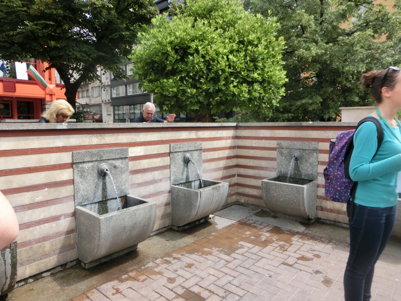 ソフィア市中心部セルディカ駅の近くにある温泉がたくさん湧いていて出ている場所。市民の多くがペットボトルをもってきて汲んでいる。出てくる温泉水は暖かく古くからあるそうで飲泉としてよく利用されているとのことでした。ブルガリアは各地に温泉が湧いていてかつて自宅に風呂の設備がないときには市民のための公衆浴場も近くにあったようです。