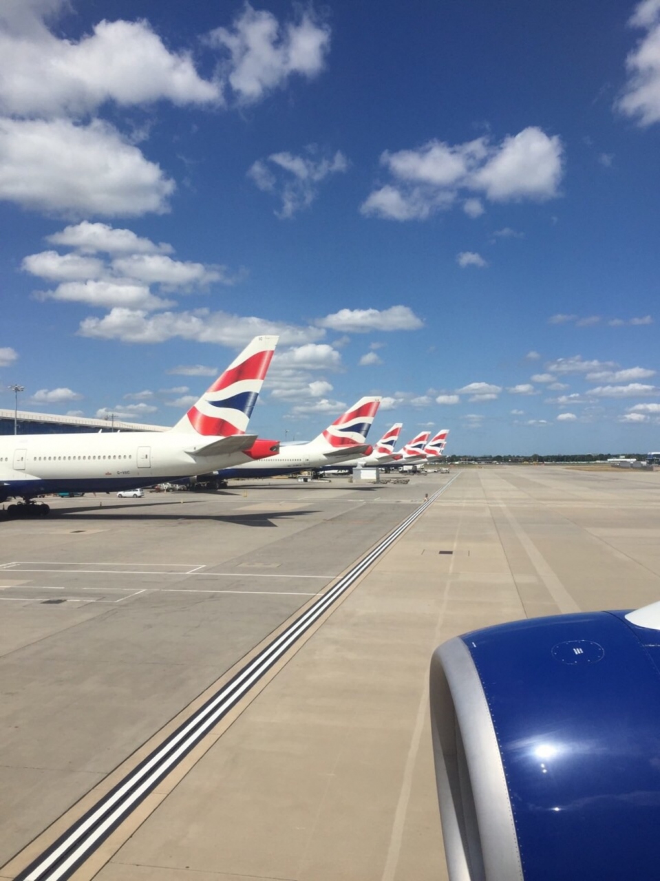 空港に到着すると、ブリティッシュエアウェイズがたくさん駐機していて新鮮でした。