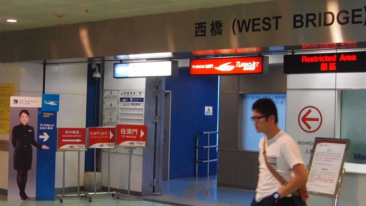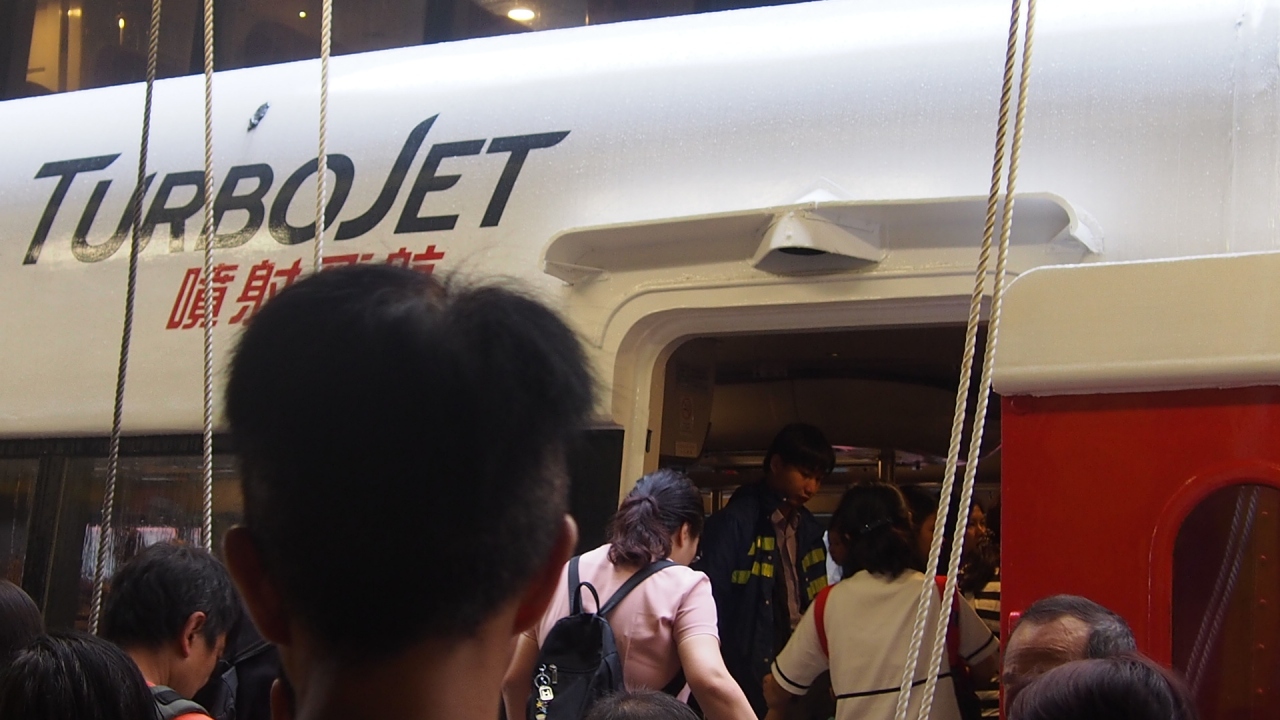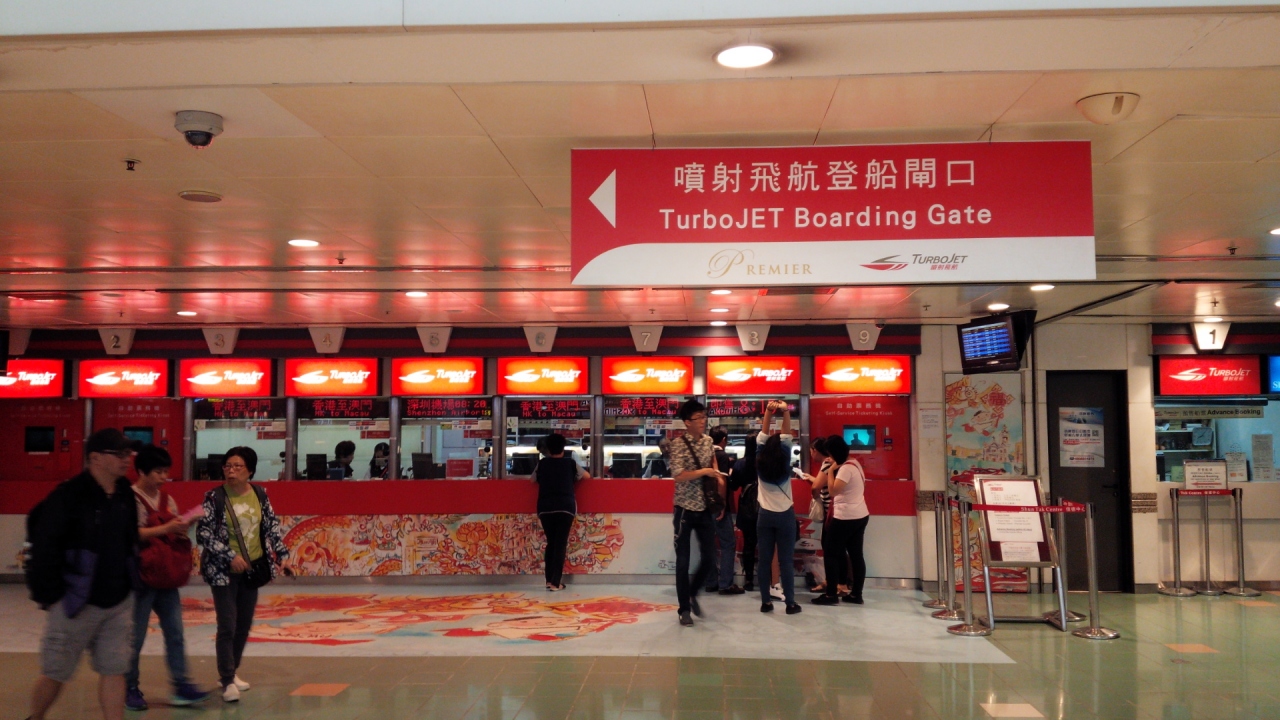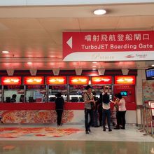 出国手続き後、ターボジェットの小さなカウンターがあり、そこで乗船券に座席指定のシールを貼ってもらえます。