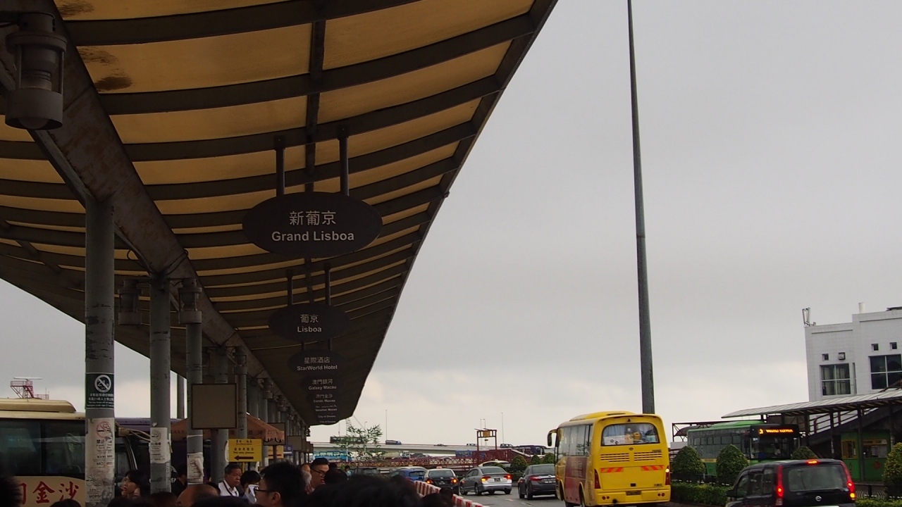 澳門外港フェリーターミナルを出て、ホテル・カジノと書かれた案内へ進むとバス乗場があります。