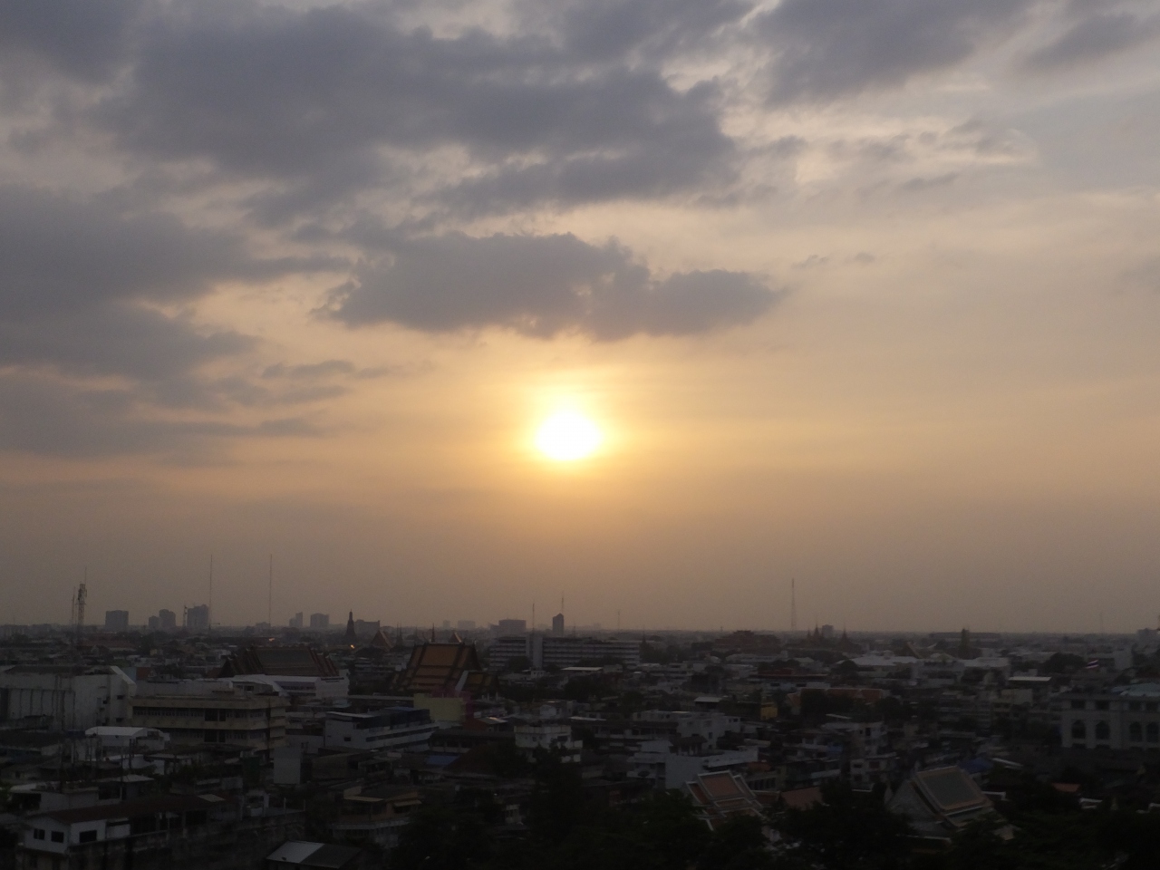 私がこの仏塔に到着したのがちょうど夕刻だったので、夕陽に染まるバンコク市内を一望できました。何も知らずに行っただけに、尚更嬉しかったです。