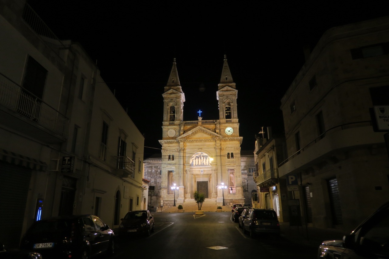チャーミングトゥルッリホテルからトゥルッリ地区に行く際、毎回教会の前を通りました。中は普通の教会ですが、外観は素敵です。夜になるとライトアップされ、綺麗ででした。モンテ地区から徒歩10分程度で行けるのでオススメです。