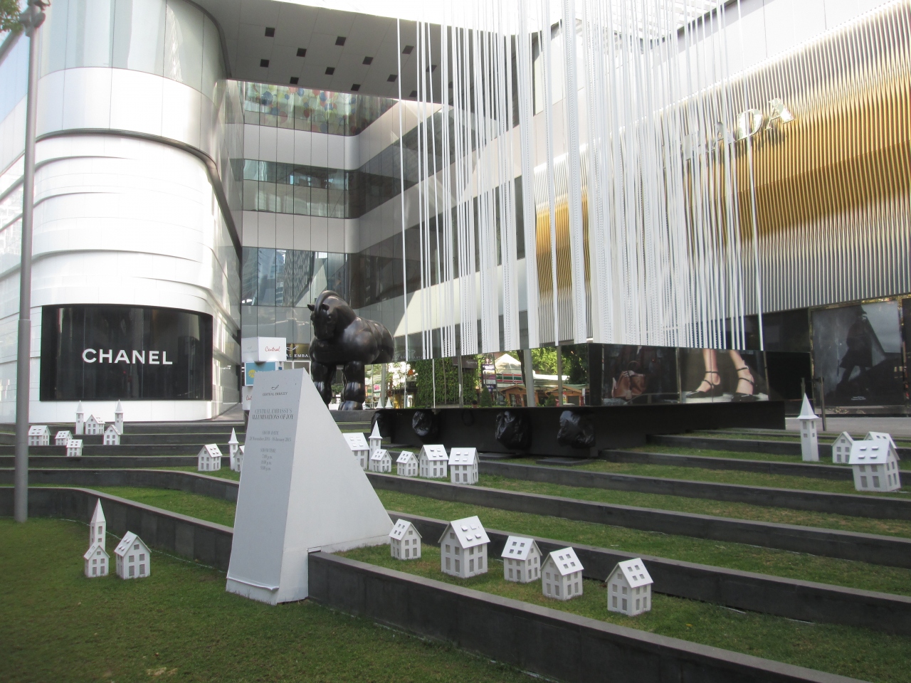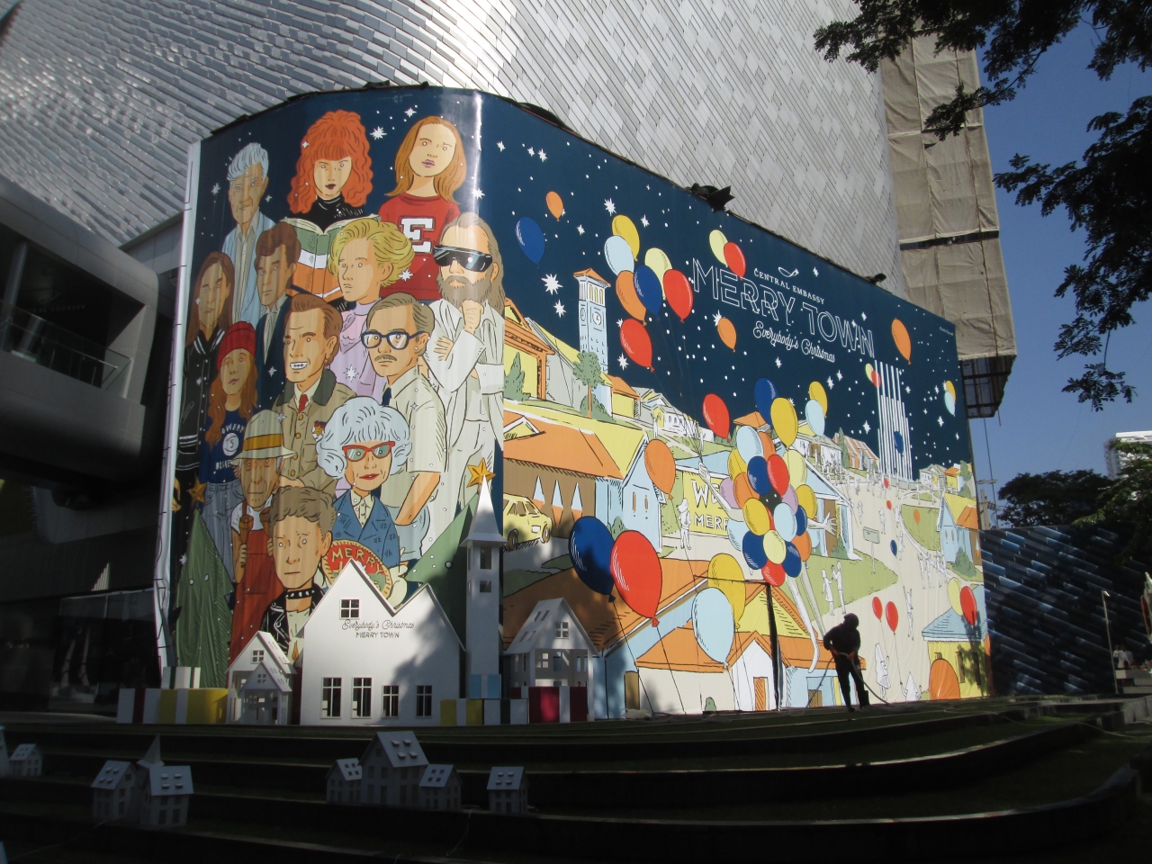 日本ではクリスマスが過ぎるとクリスマスツリー、サンタなどのディスプレーが撤去され、イルミネーションがなくなりますが、バンコクでは1月に入ってもクリスマスのお祝いモードが続いています。セントラルセントラルエンバンシーのエントランス前には冬をイメージする飾りが施されていました。