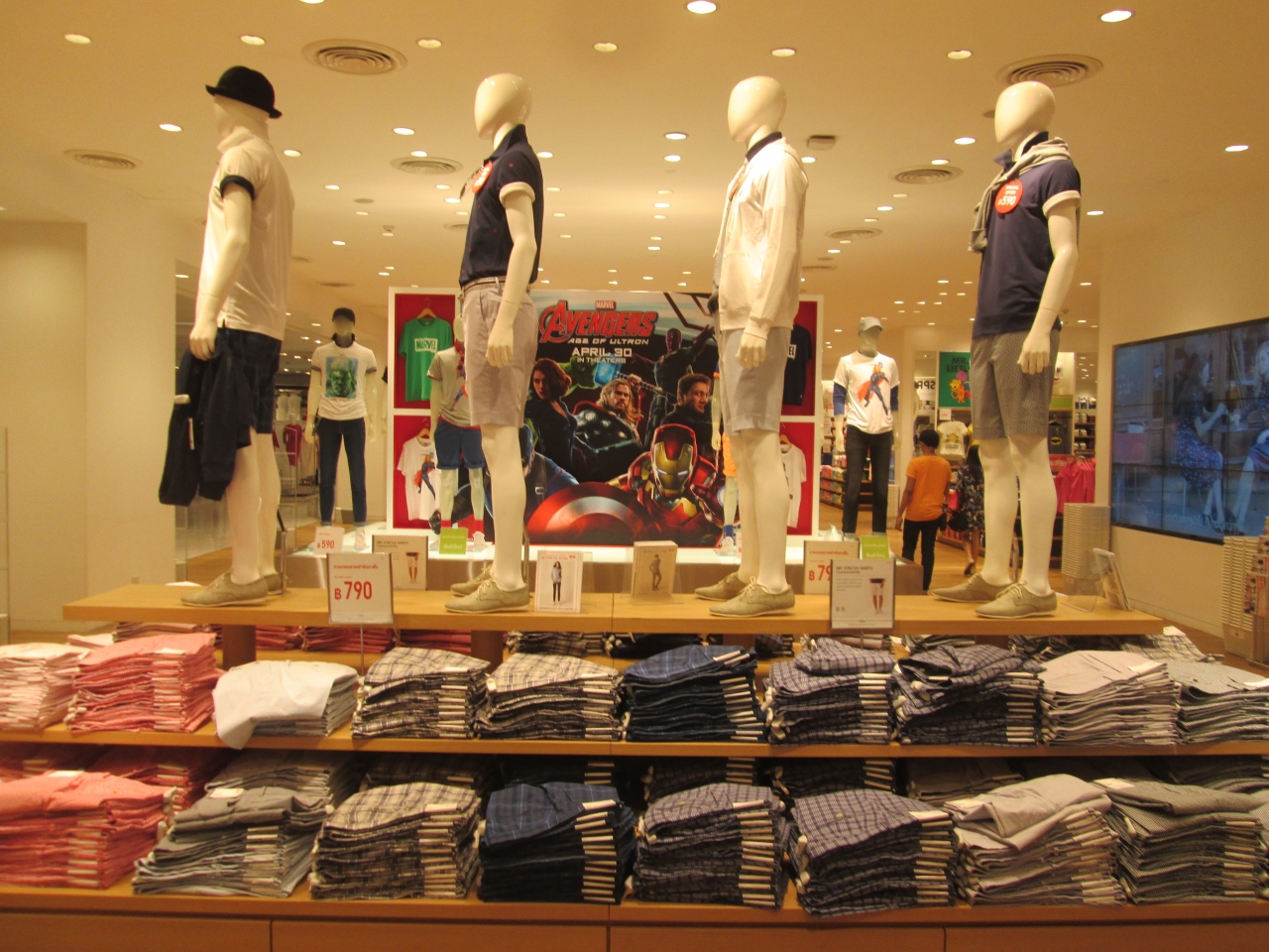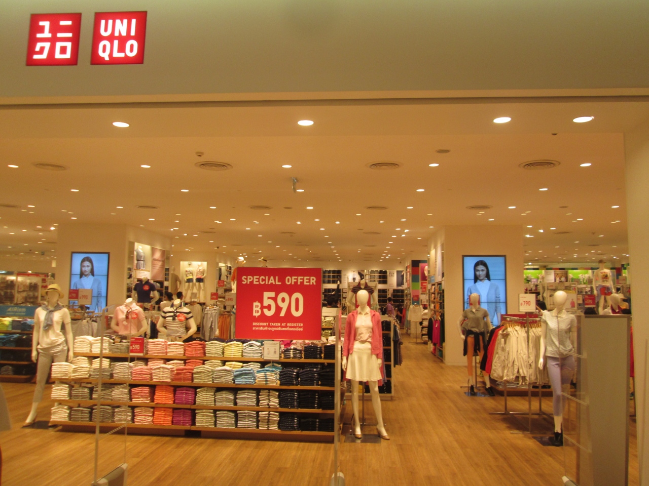 1年中暖かいタイで、特に3月のバンコクはTシャツ、ハーフパンツでも良いぐらい暑かったですが、ユニクロではアウター、長袖が売っていました。これは、最近、タイ人が日本、中国、韓国に旅行するために冬物、春物を扱っているものと思われます。