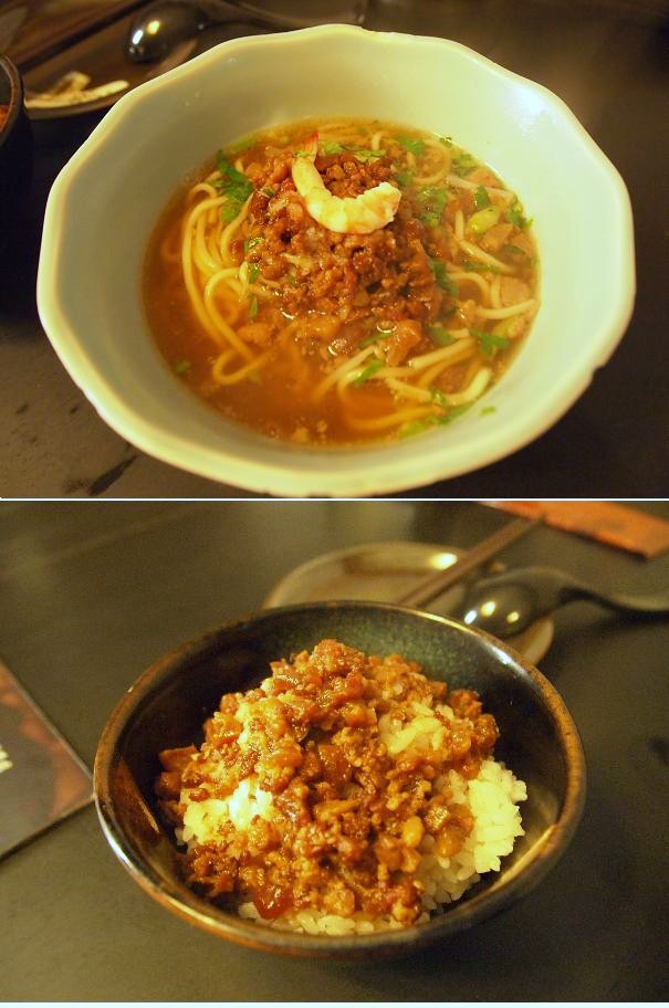 「擔仔麺」(50元)と「祖傅肉燥飯」(35元)を注文しました。注文は料理名が書かれた紙があるので、それの食べたいものにチェックをつければOKです。料理はどちらも甘辛く味付けされた挽き肉に白米や麺がよく合い、とても美味しいです。一皿がけっこう小ぶりなので、いくつか頼んでシェアするのが良いと思います。麺の方はパクチーが入っているので、苦手な方はご注意ください。メニューは日本語表記があり、写真付きなので分りやすいです。