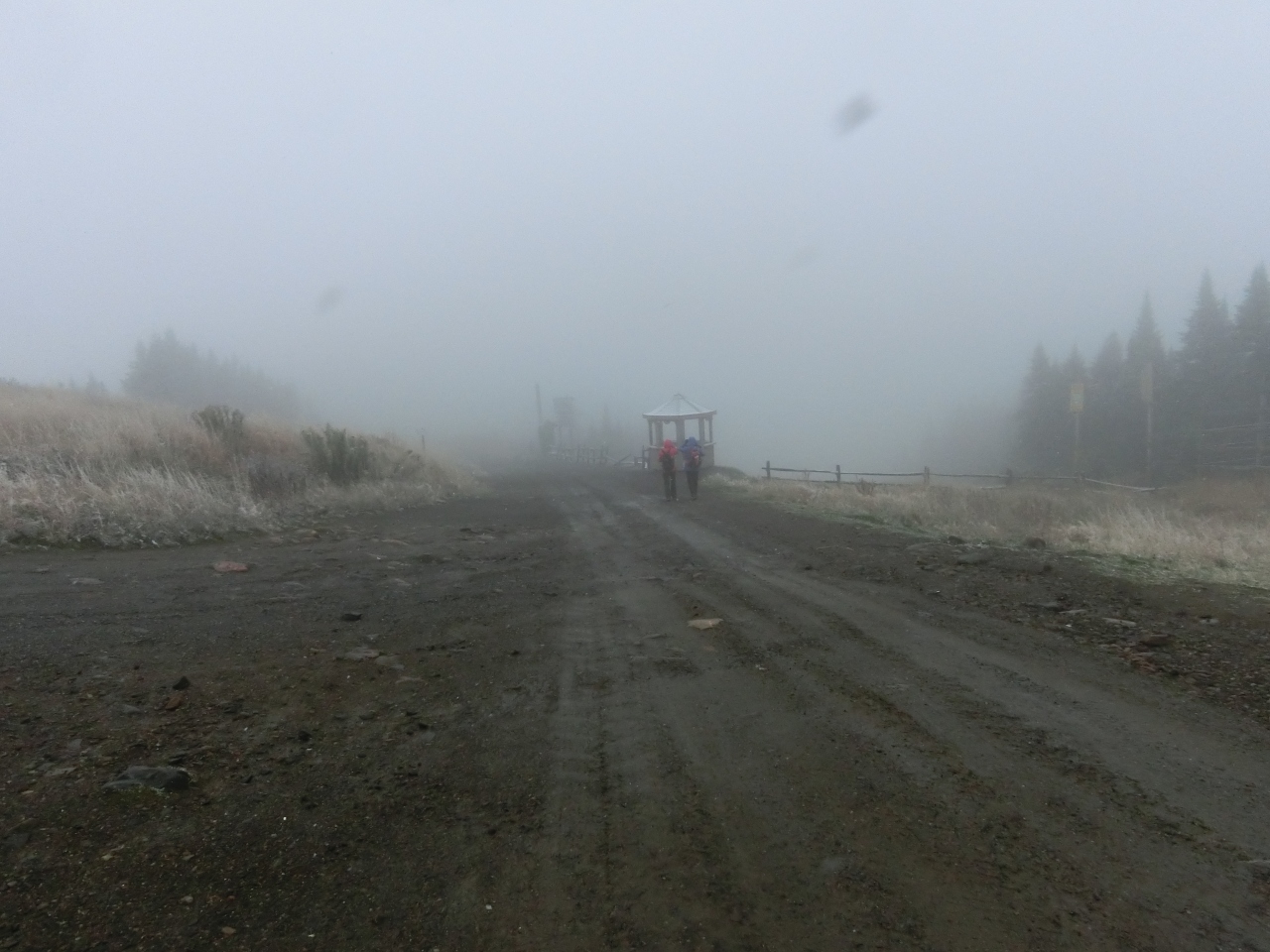 山の上の方は雪が降りだし、霧で折角の紅葉の展望がおじゃん。