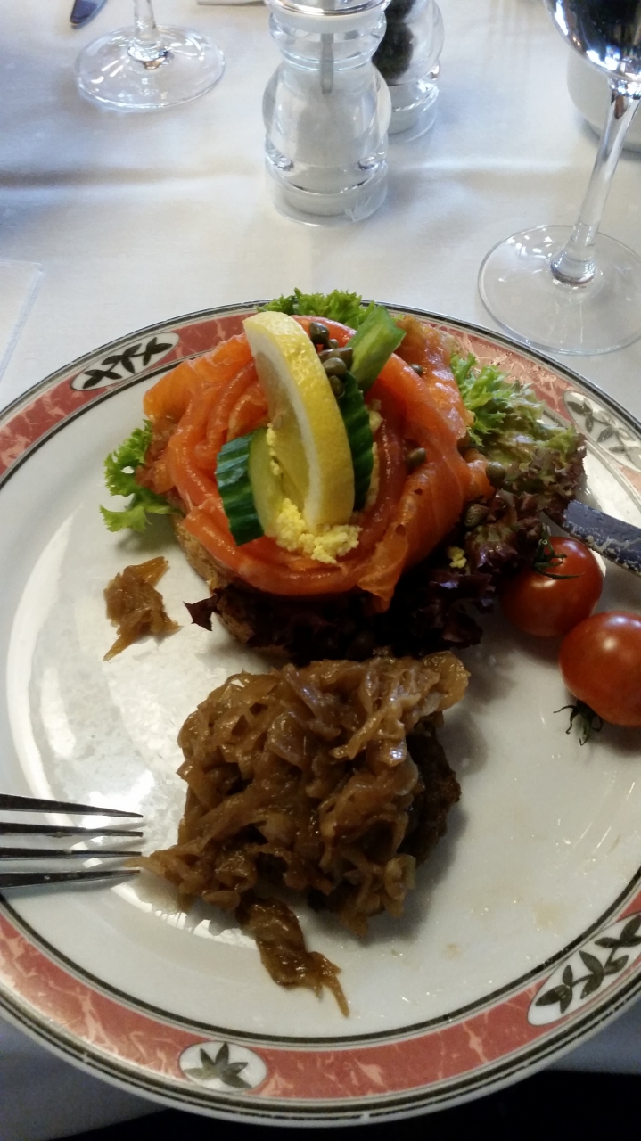 ビュッフェ形式でオスロ名物(?)のオープンサンドイッチを食べられます。三日間通って牛タルタル、サーモン、甘エビ、カニを堪能しましたが、どれも美味しかったです。他にもローストビーフ、ベジタリアン、チーズなどあり、デザートはケーキが充実してました。