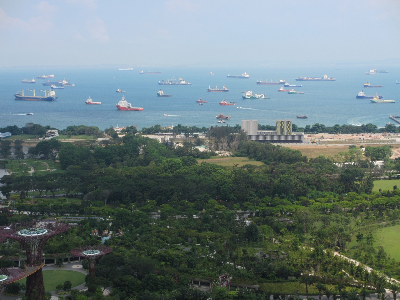 シンガポール海峡には、朝から晩までタンカーやコンテナ船などたくさんの船がマラッカ海峡を通過する順番や許可を得るために待機しています。その姿はマリーナ・ベイ。サンズのスカイパークや高層ビルから眺めることができ、海に囲まれた国であることを実感できます。