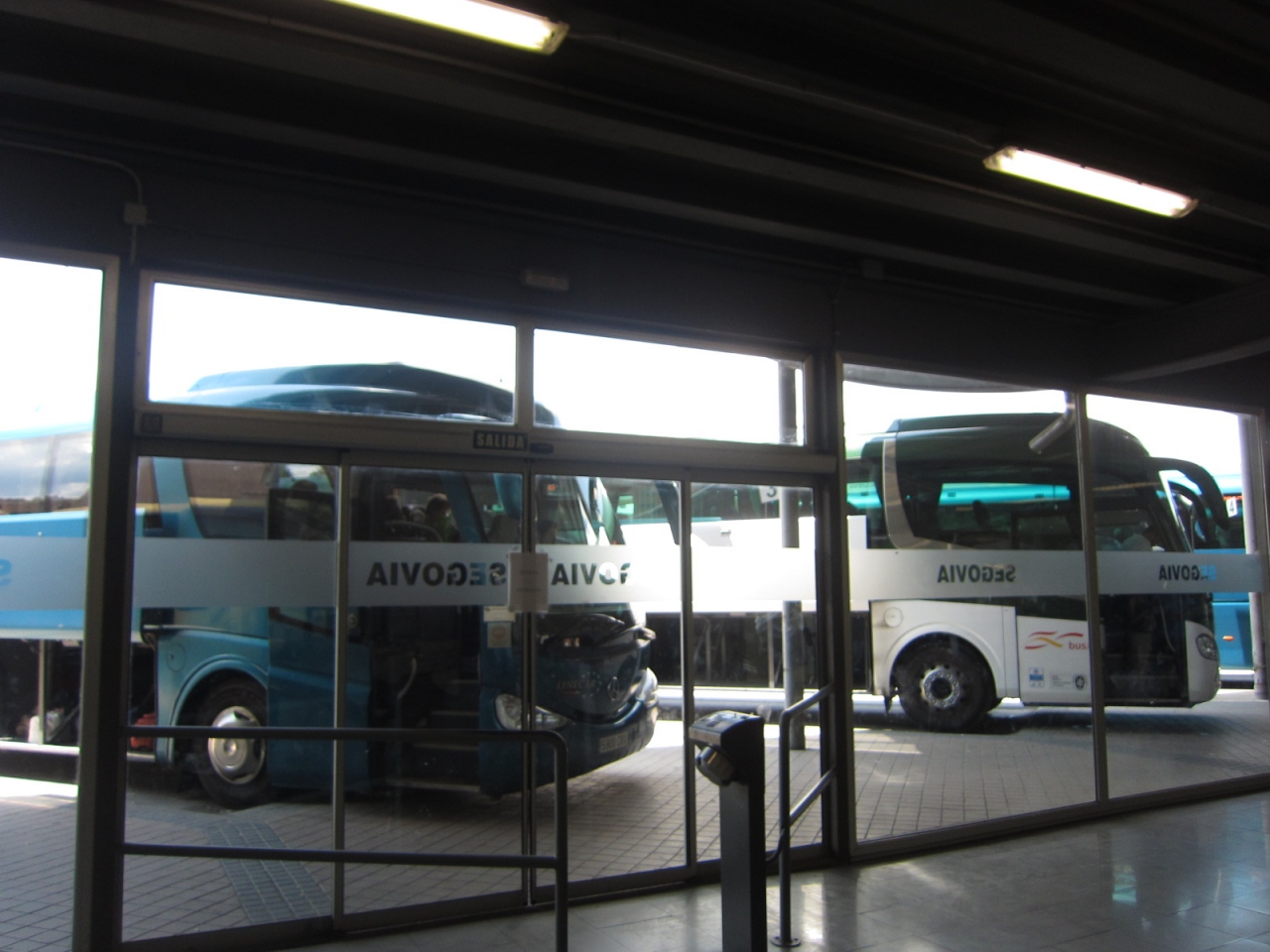 ガイドブックでは情報が追いついていないということでネットで調べていきました。3番線の終点Moncloa駅のターミナル1から出ている深緑のバス会社La Sepulvedana社で約1時間で行けます。地下鉄から乗り継いでいくと乗り場のターミナルの出たので、1階下に下りてチケットを買いました。往復で買うと安いです。何も言わないとオープンになっていて、7日間有効と書いてありました。15分前でしたが買えました。改札は5分前に始まりました。