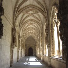 歩いていると行き着いた教会。外観が気になったので入ってみました。入り口を入るとまず階段を下りて料金を払います。中はとても広く、庭や回廊があり、上の階にも行けます。回廊がとてもきれいで人も少ないので人がいない状態でも写真を取れます。天井が不思議な幾何学模様で夢中で見ていました。この後訪れたアンダルシア地域と同じでした。